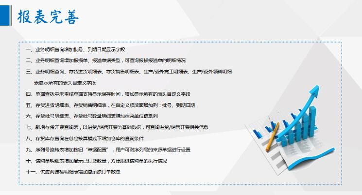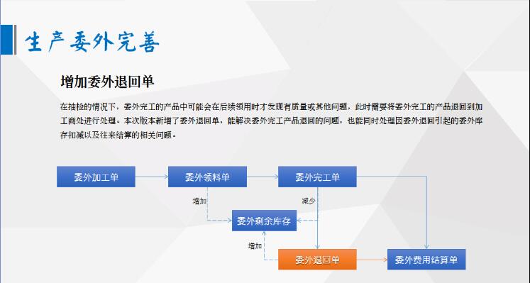 随着中国制造2025的推进,广大中小生产制造企业也需要强化内部管理,以应对日益激烈的市场竞争。15.8针对多项生产制造细节进行完善,例如BOM完善、成本预测完善、完工批号完善等十几项全面完善工作,帮助企业实现管理升级。