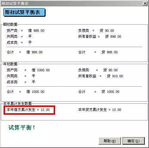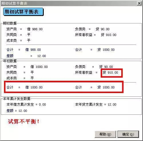 如上年初已经平衡,但是本年累计和期初依然不对;接下来调期初,可以在账务期初报表中浏览一下期初的状况,也可以直接将差额 12 天到权益类的,或者指定的调账类科目的借方即可。