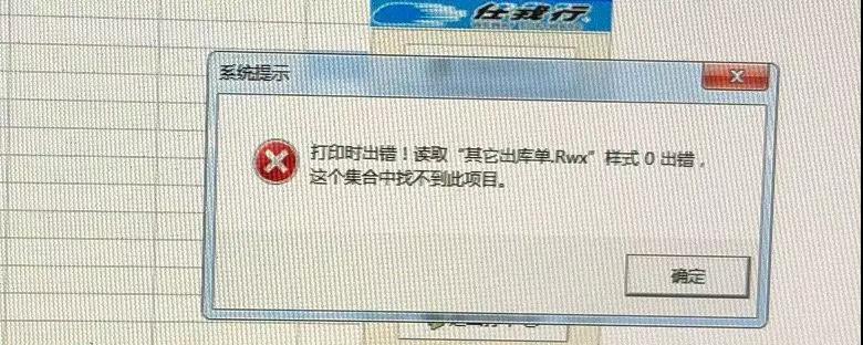 点击打印—开始打印,提示“打印时出错,读取**样式0出错,这个集合中找不到此项目”,如图