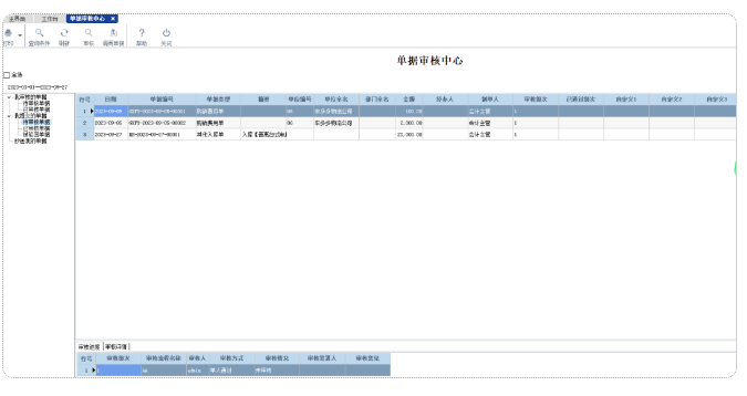 在日常业务操作中,客户可以通过财贸ERP对每笔业务单独进行审核,也可以通过待审核中心对特定条件下的业务进行批量审核。