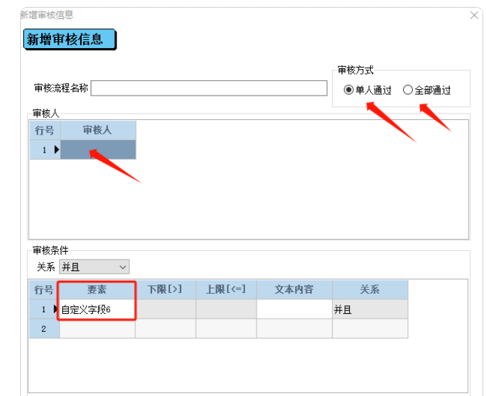 3.条件审核:按设定的审核条件决定多级审核流到特定的审核人。