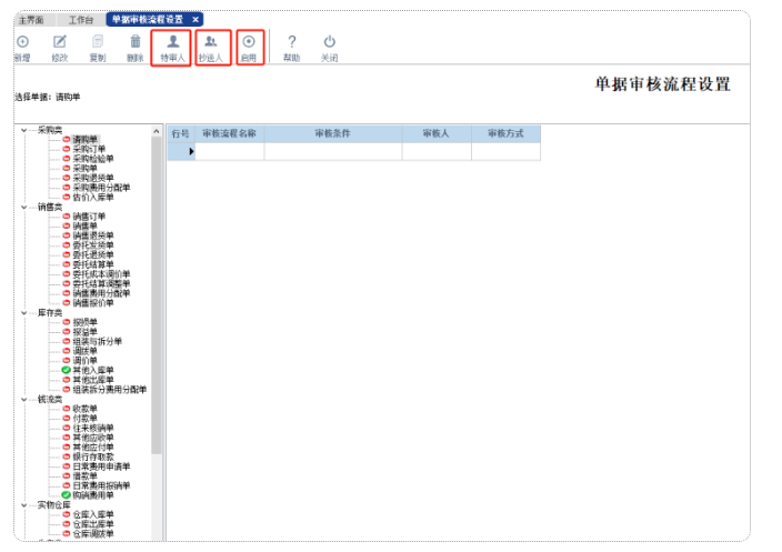 1.启用禁用:使用右键对单据进行启用或禁用审核流;不启用审核流,则保存即过账。