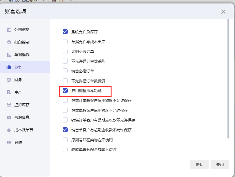 1,系统管理-账套选项启用:销售抹零