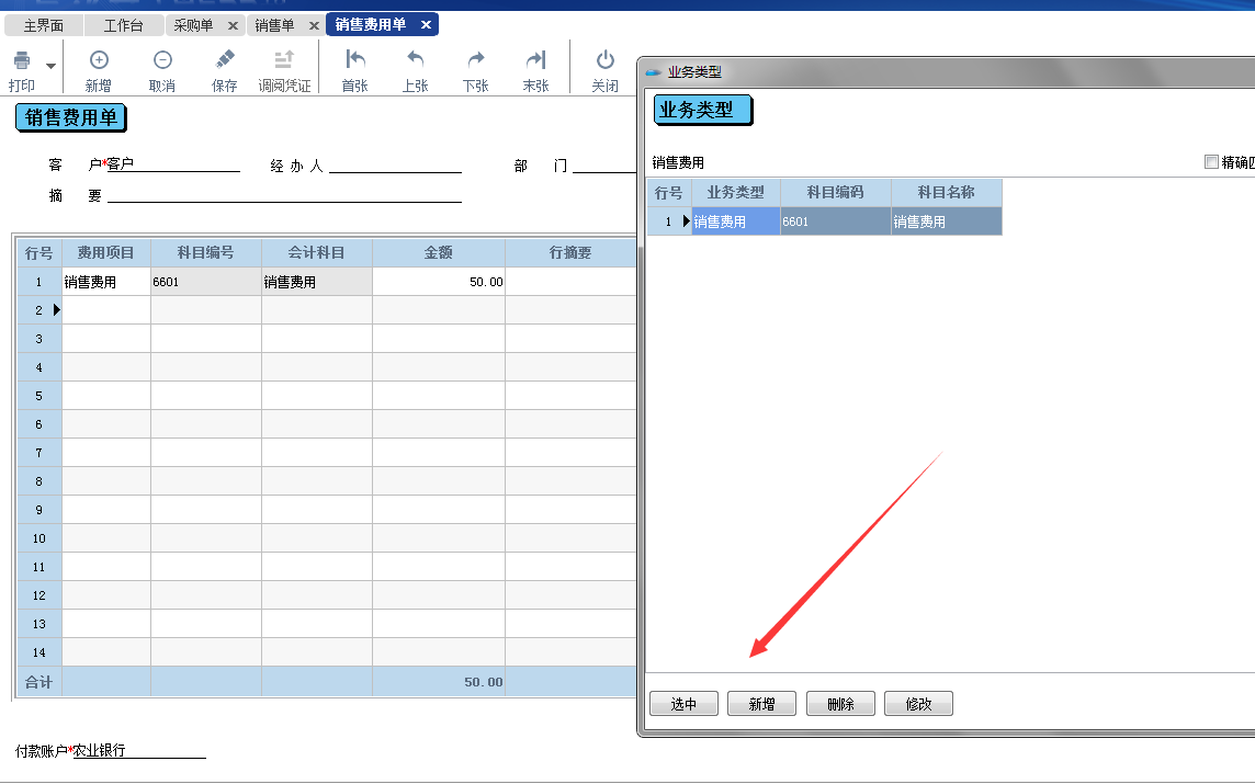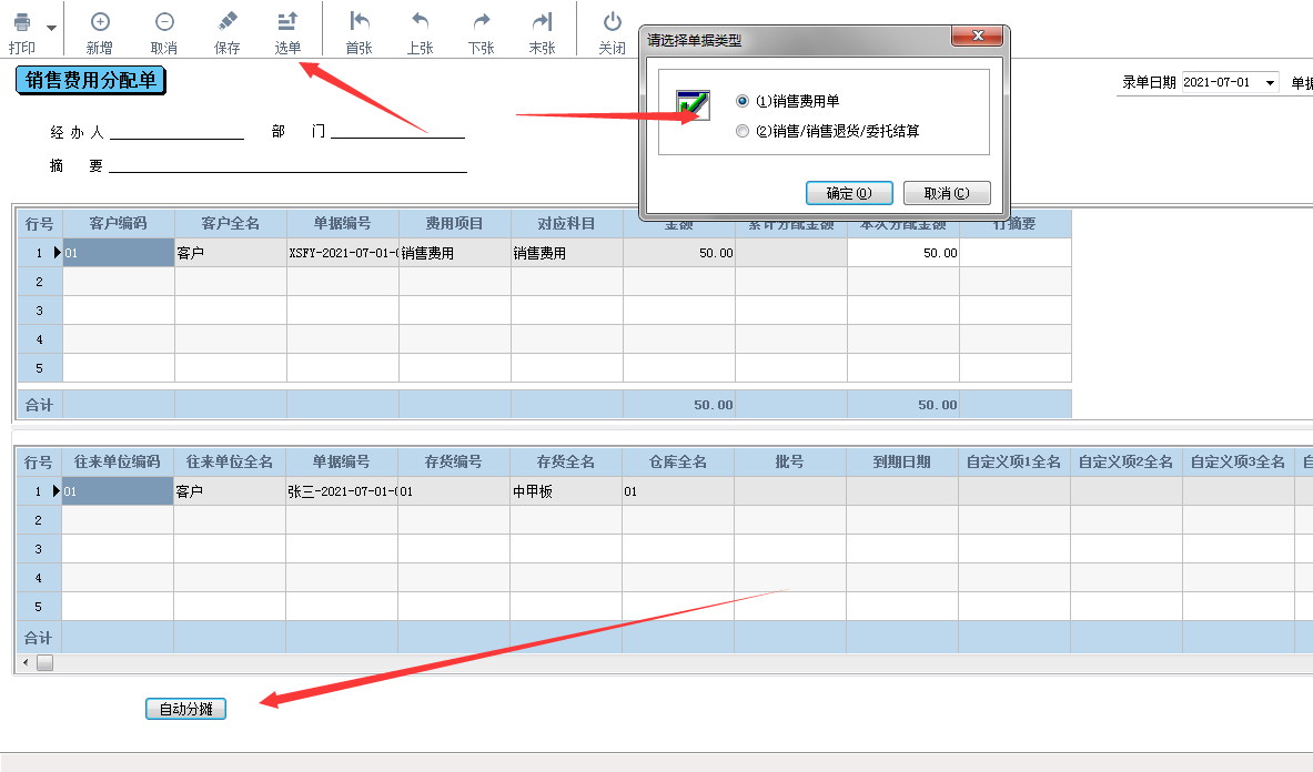 销售费用分配单选择对应的销售费用单和进行分摊的单据