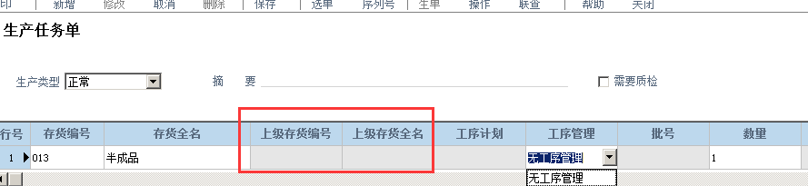 生产任务单上的“上级存货编号”和“上级存货全名”怎么带出?