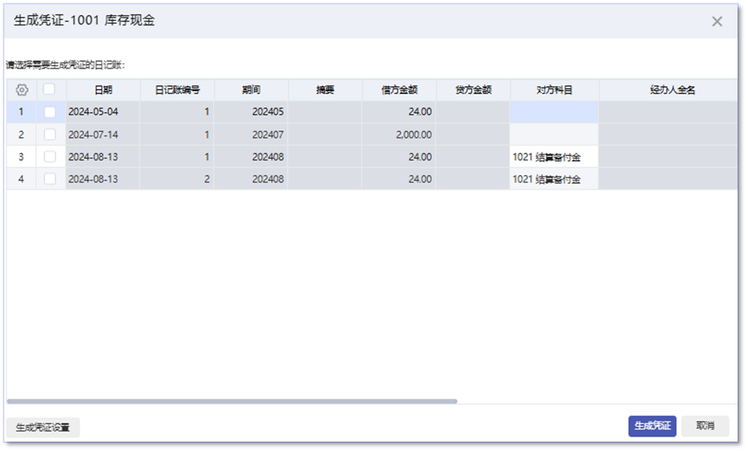 【出纳】日记账如何批量 / 合并生成凭证?