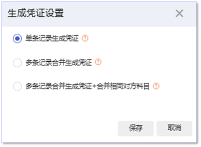 • 单条记录生成凭证:一条日记账对应一条凭证
