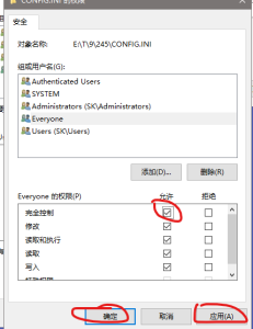 4 勾选完全控制后,再点击应用-确定,然后再最后点一次确定,权限设置完成。